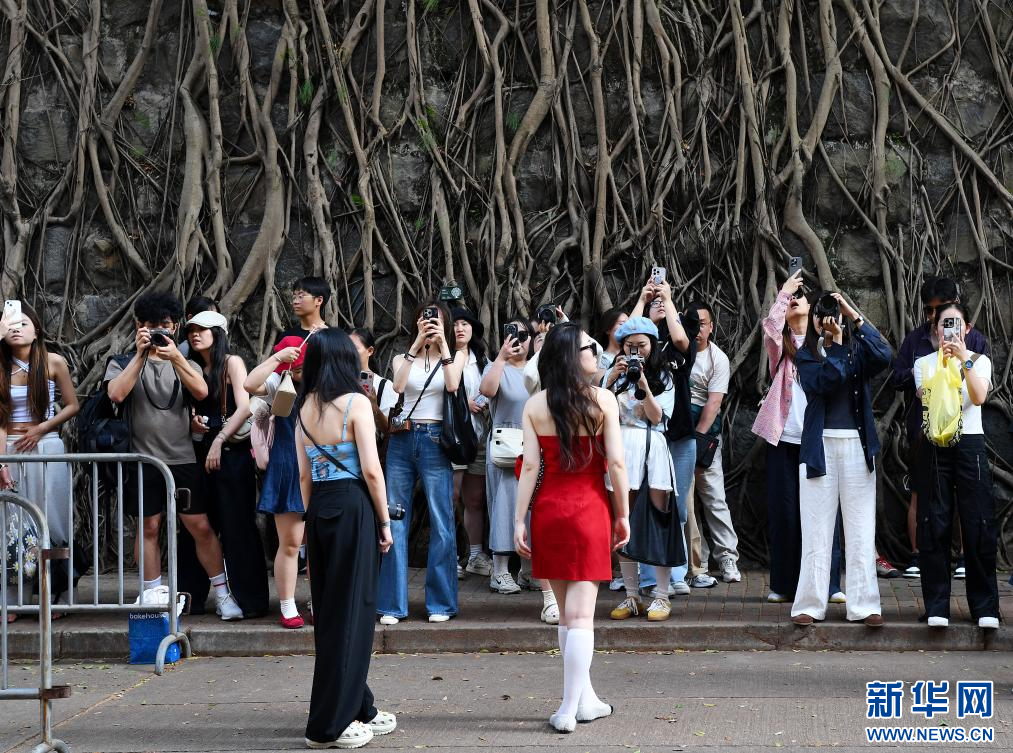游客在香港坚尼地城附近的网红打卡点拍照(5月2日摄)。新华社记者 陈铎 摄