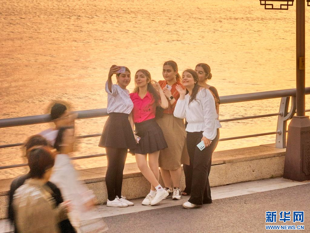 游客在湖南常德河街游玩打卡(5月3日摄)。新华社记者 陈思汗 摄