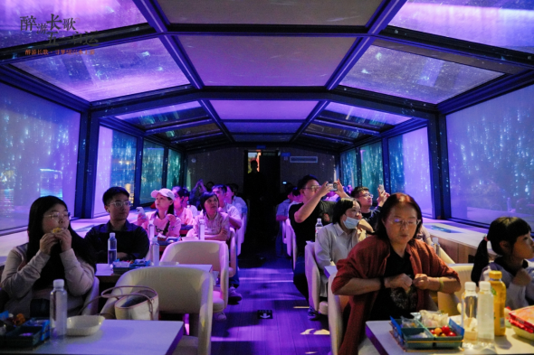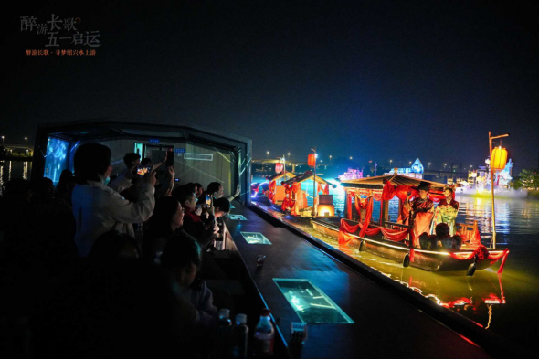 乌篷船是水乡绍兴的特殊符号,依托其独特的文化魅力成为游客首选。“五一”假期期间,乌篷船共接待旅客7万余人次,同比增长9.39%;普通客船客运量达0.3万人次左右,同比大幅增长20.44%。此外,“醉游长歌·寻梦绍兴水上游”游线也正式亮相,游线从运河文化园延伸至黄酒小镇,分为日游和夜游两种模式,打造了光影交织的沉浸式夜间文旅体验,既缓解了核心景区运力压力,又为游客提供了“一船尽览水乡风情”的全新体验,全区夜游船舶累计运送旅客0.2万余人次,成为假期消费新亮点。