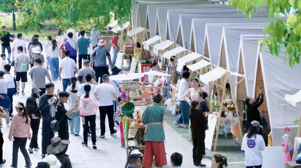 除了市集活动,仙都景区还举办了丰富多样的“五一”活动,包括特色小吃、文创风物展示以及情景互动等,带领游客沉浸式体验独特的文化氛围。游客孔先生表示:“我们一家过来旅游,逛了这里的市集,买了缙云烧饼、文创扇子,这个市集非常有趣。仙都这里的人文和自然景观结合得比较好,让我们小朋友和大人都能够自得其乐。