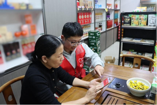 工作人员指导零售户开展烟草专卖法律法规线上知识问答。