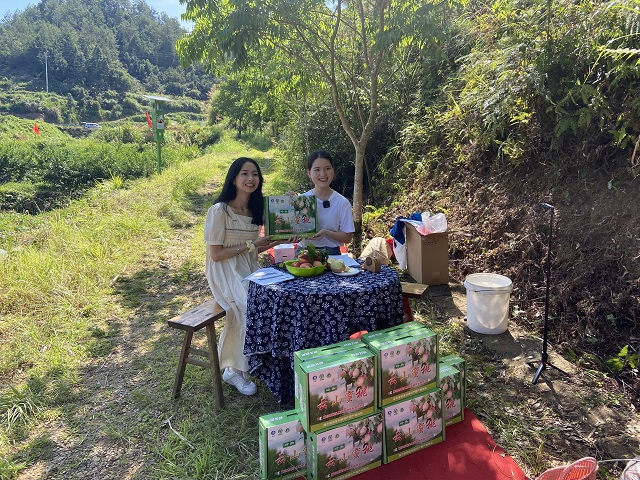 为了助力仙渡乡拓展桃子销路,丽水市烟草专卖局联合丽水邮政部门,将共享直播间设到仙渡乡的田间地头。竖起支架、架起手机,“香溢”志愿者和邮政部门工作人员搭建起简易的助农直播间,化身带货主播。