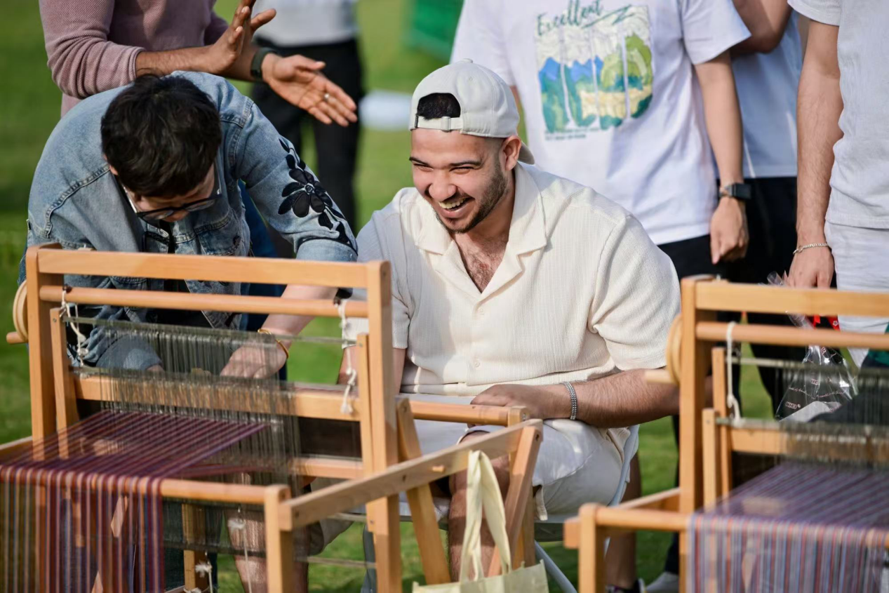 此次展出的文创产品不仅是设计的创新,更是非遗传承模式的探索。余姚土布馆与宁波大学合作,通过“非遗进校园”项目,让学生近距离接触传统工艺,并参与产品开发。活动现场,两架传统木质织机尤为引人注目。在余姚土布宁波级非遗传承人章惠珍的指导下,来自俄罗斯、韩国等国的留学生轮流坐上织机,感受织布的魅力。“这些纹样很有中国特色,但设计又很国际化,我想带回去送给朋友。”许多留学生纷纷发出赞叹。(干雨微/文图)