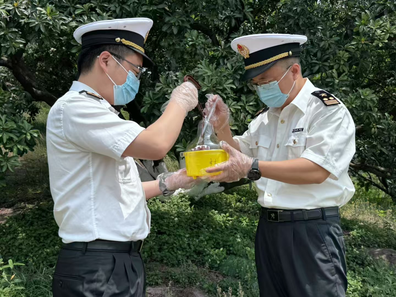 宁波海关所属余姚海关工作人员在安装实蝇诱捕器。