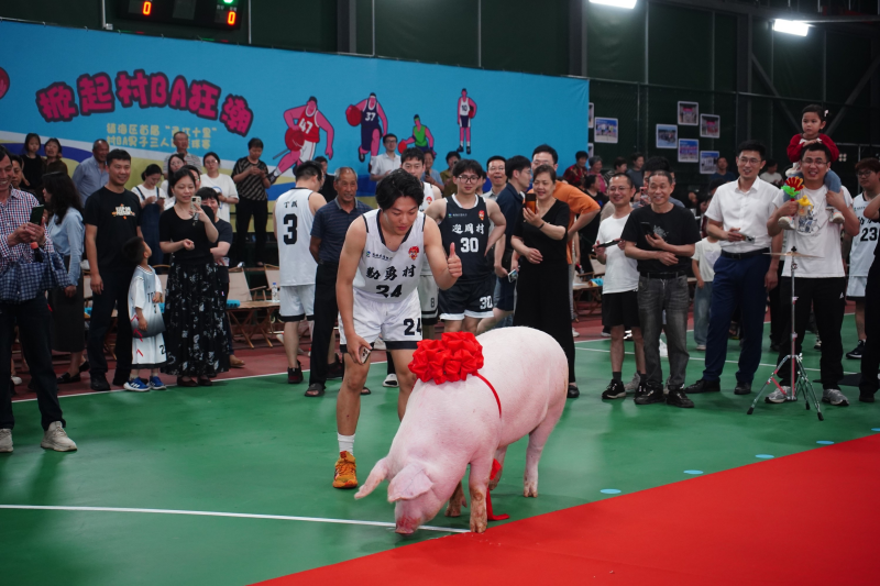 而颁奖仪式上,最引人注目的当属“活奖品”——戴着大红花的“如意猪”和“共富羊”。当工作人员将它们牵到球场中央时,现场瞬间沸腾,村民们纷纷拿起手机拍照,笑称这是“史上最接地气的冠军奖”。这份特别的奖品,不仅是对获胜队伍的奖励,更寓意着乡村共富的美好愿景。