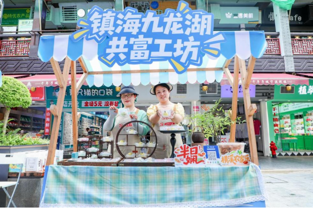 5月17日,在浙江省宁波市鼓楼中心商区的共富工坊旗舰店,镇海区“一镇街一品牌”九龙湖镇“食尚集趣 共富九龙”共富工坊推介会启幕,为市民和游客带来一场“舌尖+指尖”的共富文化体验。