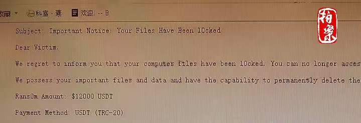 这是提示文件已经被锁定的勒索信息。(杭州市公安局上城分局供图)