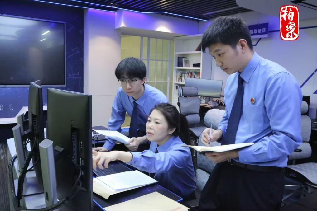 2024年6月26日,承办检察官与技术部门人员对涉案电子证据材料进行审查分析。(上城区人民检察院供图)