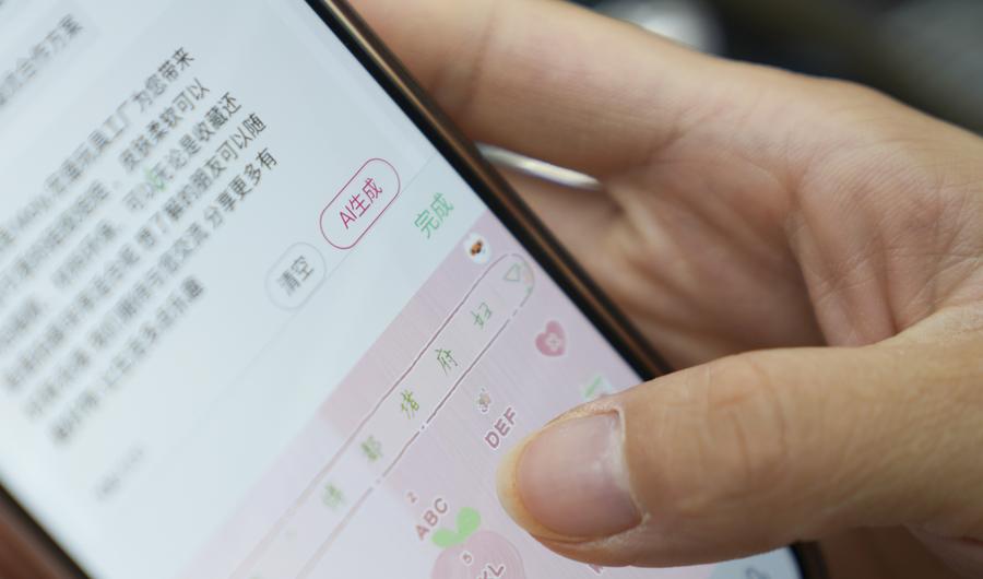 5月20日,孙丽娟的同事展示手机应用的AI数字人功能。新华社记者 韩传号 摄