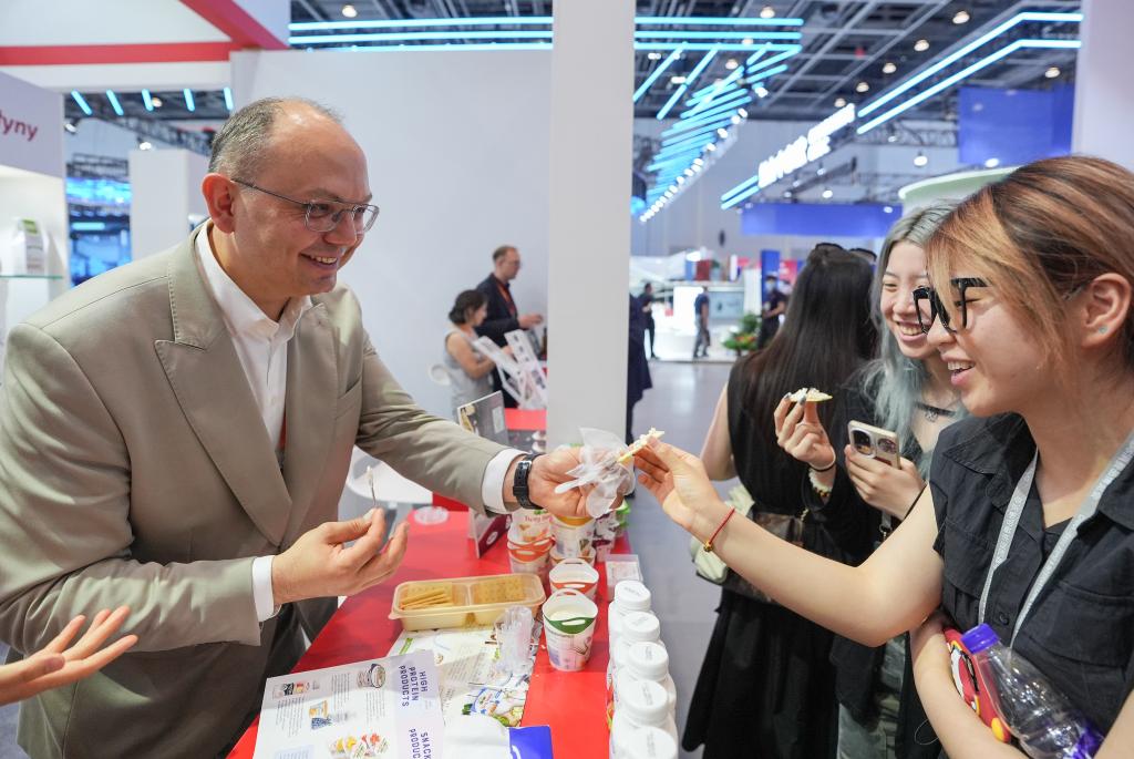 5月22日,波兰参展商在中东欧展馆推介奶酪。新华社记者 黄宗治 摄