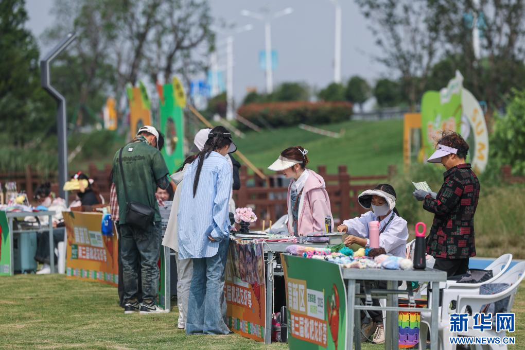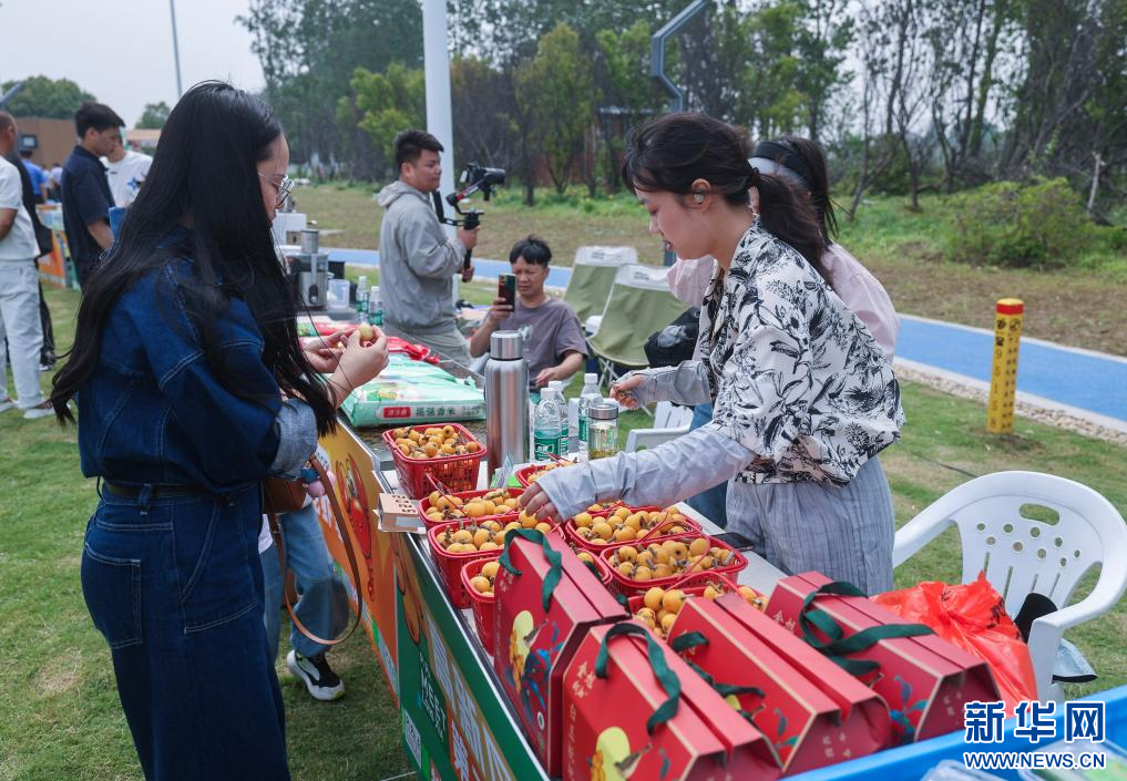 5月24日,游客在幻溇村清野休闲营地夏日枇杷龙虾季活动现场的特产市集上选购乡村特产和手工艺品。