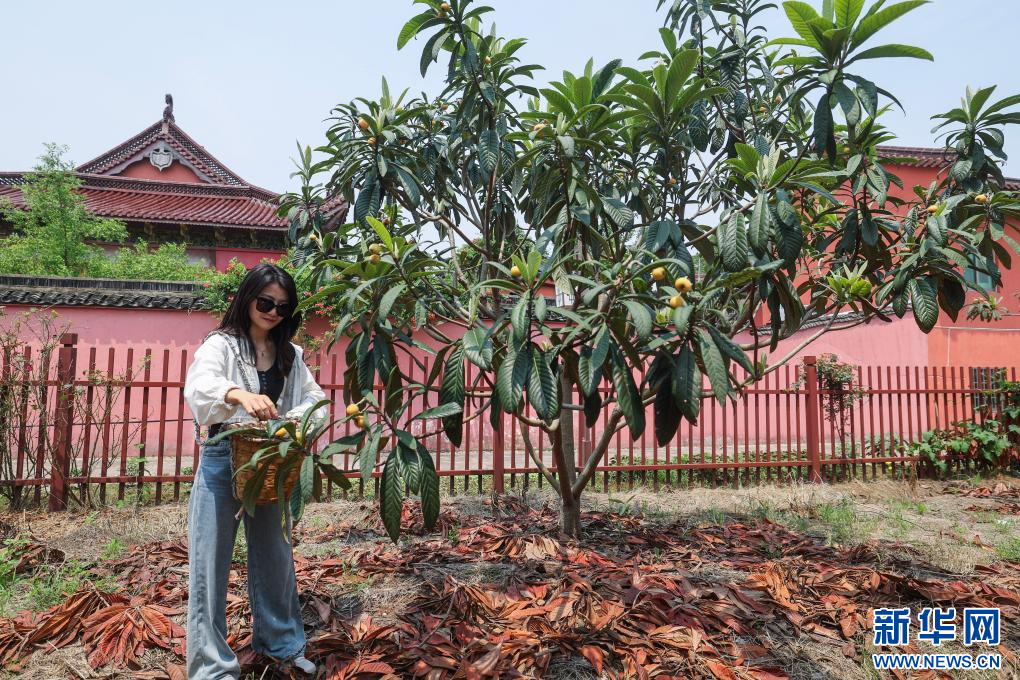 5月24日,游客在许溇村枇杷种植基地体验枇杷采摘。