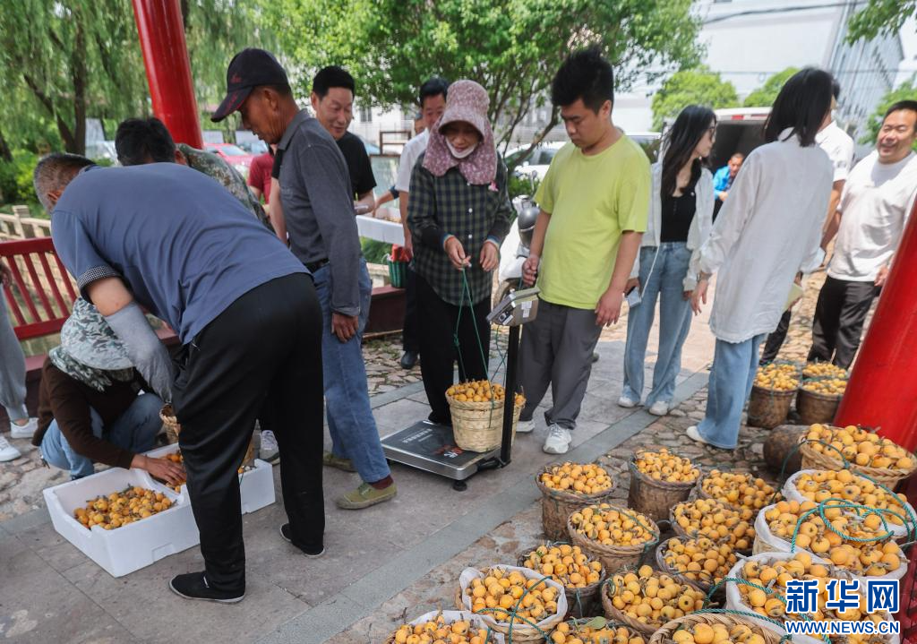 5月24日,许溇村枇杷种植基地在统一收购种植户采摘的枇杷。许溇村被誉为“太湖枇杷村”,今年迎来600余亩白玉枇杷丰收。