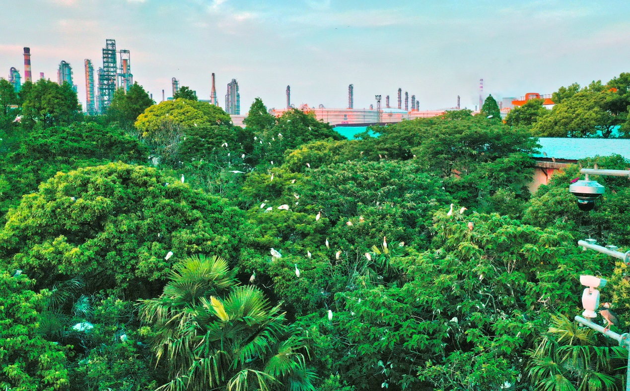 “这里曾是石化管道的集中区域,现在成了鹭鸟的家。”镇海炼化公司相关负责人介绍,自2000年种植首片2200平方米树林后,企业持续优化生态布局,施工避开鹭鸟越冬期、绕道管道铺设、新增水体并投放鱼虾苗,逐步形成完整的鹭鸟栖息链。与此同时,宁波石化区通过“减量循环+数字监管”模式严控VOCs排放,打造“无废园区”,为鹭鸟提供安全环境,夜鹭、池鹭与石化装置构成超现实图景。