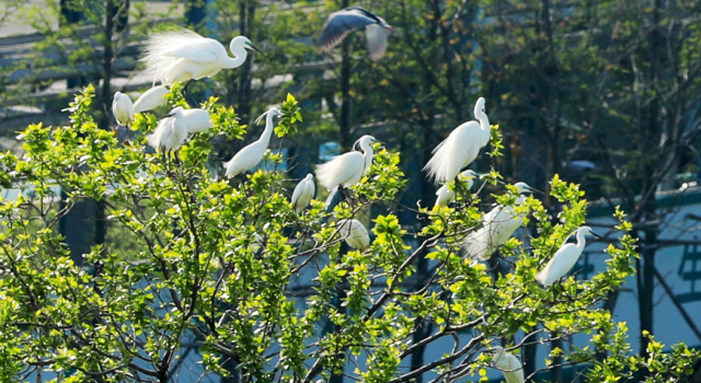 据介绍,白鹭园坐落于宁波石化经济技术开发区镇海炼化公司,是全国首个嵌入石化园区的白鹭栖息地,其核心区占地1.5万平方米,辐射范围达40平方公里。园区内绿树成荫,鹭鸟群飞,目前栖息鹭鸟近4000只,包括白鹭、牛背鹭及珍稀的大白鹭、黄嘴白鹭等40余个品种。通过GPS追踪与长期监测,园区已精准掌握鹭鸟迁徙路线与习性,为科学保护奠定基础。