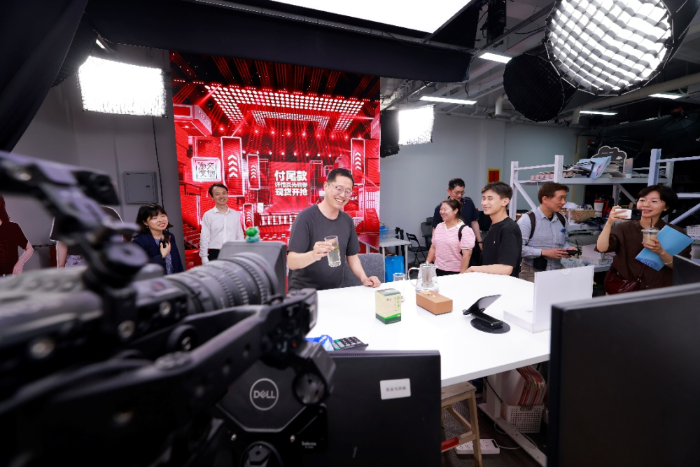 日本《东京新闻》记者在交个朋友直播间体验直播流程。