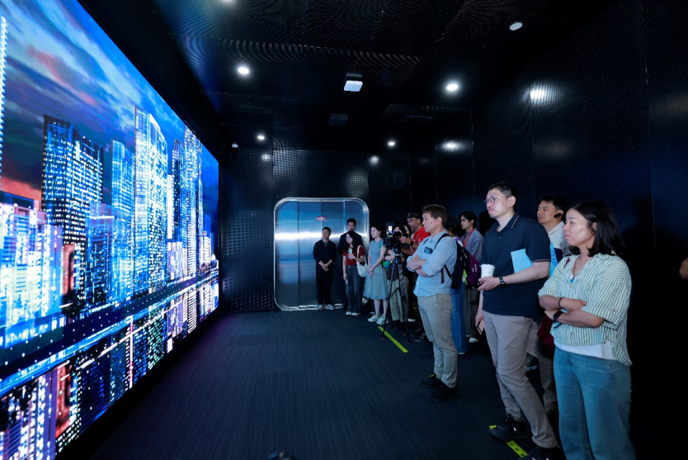 外媒团在大丰科创中心科技体验中心展厅参观。