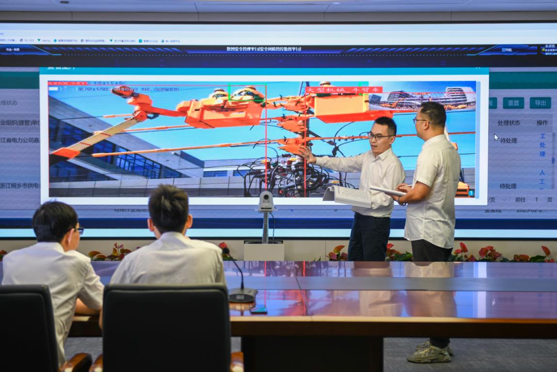 国网浙江电科院技术人员正在对“虚拟安全员”筛选出的高风险作业情况进行分析。刘广扩 摄
