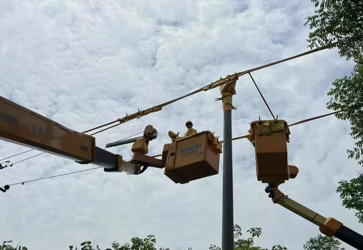 与此同时,为最大限度降低施工影响,配电分公司创新采用“零停电”作业模式,在浦阳镇尖湖区域实施带电立杆作业。作业人员运用绝缘斗臂车配合多层绝缘遮蔽技术,在保障居民“零感知”用电体验前提下,顺利完成高危复杂环境下的高空作业。此次突破标志着浙江中新电力工程建设有限公司带电作业技术迈向新台阶,为后续不停电施工积累了重要实践经验。(杨羽洁/文 浙江中新电力工程建设有限公司/供图)