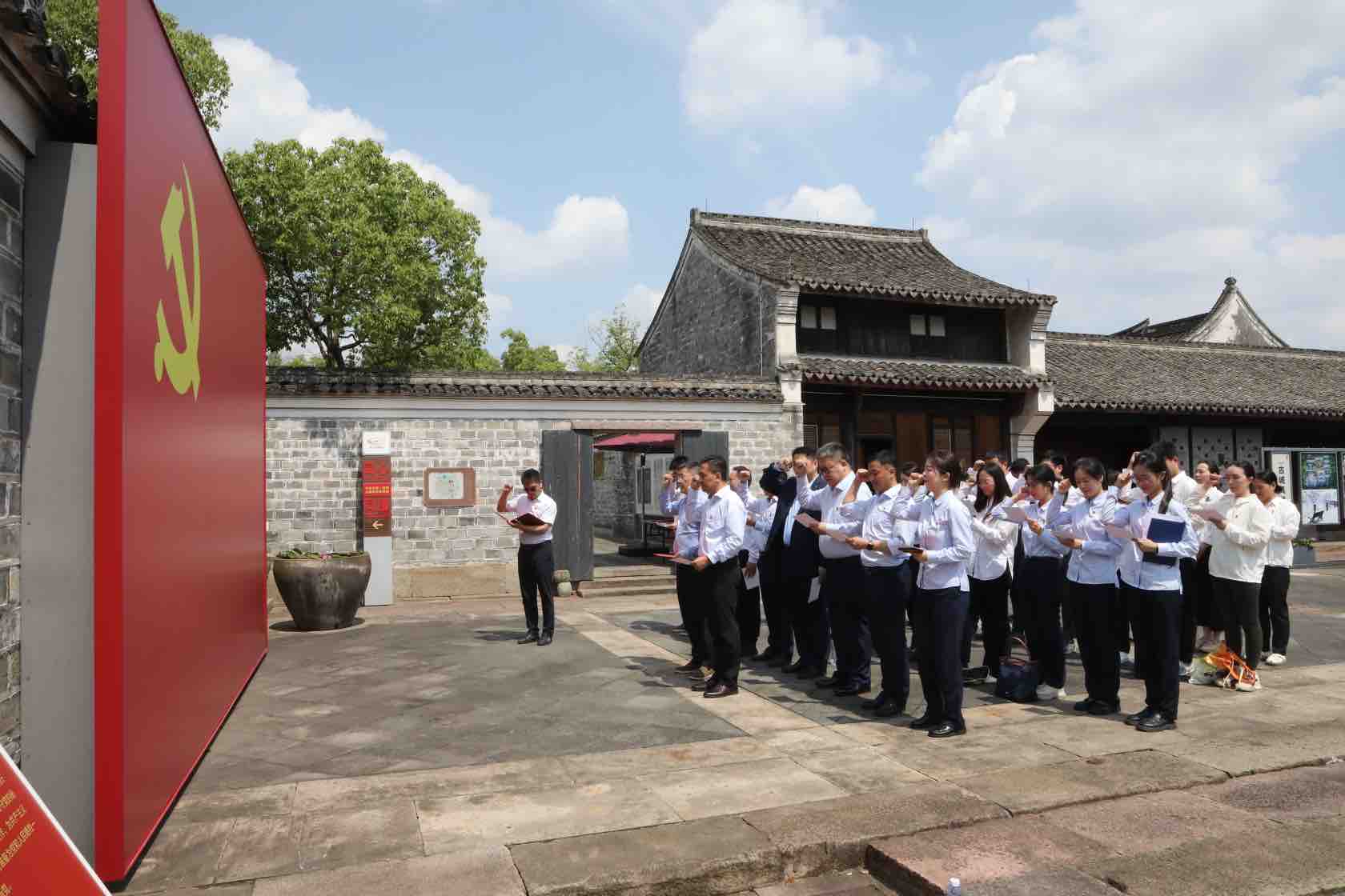 近日,浦发银行宁波分行党委与华润置地华东大区宁波公司党总支共同开展“牢记嘱托,勇担使命,改革深化提升建新功”党建共建主题活动。双方近40名党员代表共赴浙江宁波江北慈城冯定故居真理园,通过沉浸式学习感悟真理力量,坚定理想信念,凝聚奋进合力。