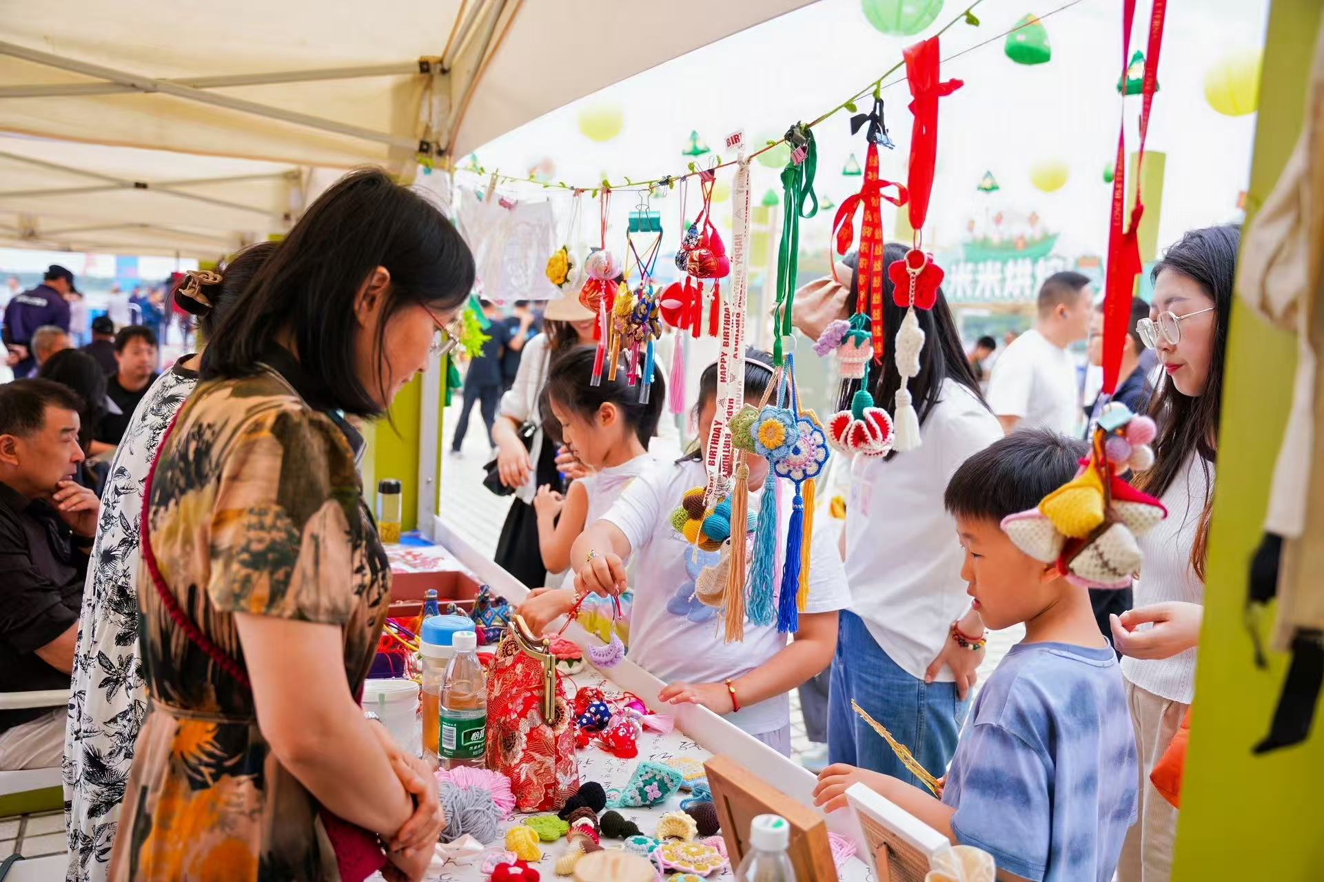 作为本次活动的亮点之一,2025嘉善县端午民俗文化系列活动以“水岸联动”的形式,将非遗技艺与现代生活深度融合。在汾湖畔的民俗文化市集上,非遗剪纸艺人以刀为笔,刻出“龙舟竞渡”的灵动图景;竹编匠人巧手翻飞,将竹条编成“生态绿舟”;糖画师傅挥洒金汁,勾勒出“粽香情浓”的甜蜜图景。现场更有钓粽子、射五毒等趣味互动。
