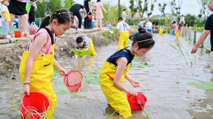 本届赛事首次打造全天候端午嘉年华,让传统节日焕发新活力。在“粽情游园会”现场,30组亲子家庭参与“艾香满宠”古风花束制作和“包粽幸福”限时大赛,孩子们在船厂共富工坊体验乌篷船彩绘的乐趣。“渔趣体验区”内,渔娘们展示精湛的织网技艺,“趣捉泥鳅”活动让城市孩子感受别样的水乡童趣。傍晚时分的“小岛狂欢夜”更是将气氛推向高潮,徐氏龙虾宴香气四溢,青年夜校才艺秀与“虾客争霸”趣味游戏引来阵阵欢笑。夜幕降临后,数百盏祈福河灯随波荡漾,为端午佳节增添浪漫色彩。