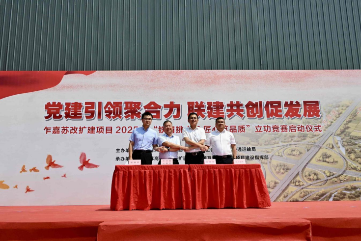 近日,“党建引领聚合力 联建共创促发展”乍嘉苏改扩建项目2025年“铁肩挑大梁 匠心筑品质”立功竞赛启动仪式在浙江交通集团下属交工金筑承建的乍嘉苏改扩建1标施工现场举行。