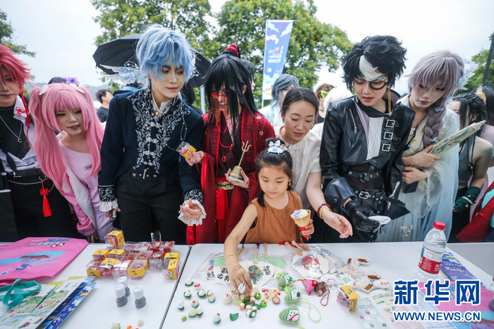 5月31日,演员在动漫市集上与游客互动。