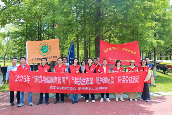 6月4日,一场以科普、实践、运动相结合的环保行动在浙江省湖州市西山漾湿地公园拉开帷幕。农工党湖州市委会联合湖州市水上运动协会,以“共执生态桨,同护‘湖州蓝’”为主题,助力打赢蓝天保卫战,开展2025年“环境与健康宣传周”活动。