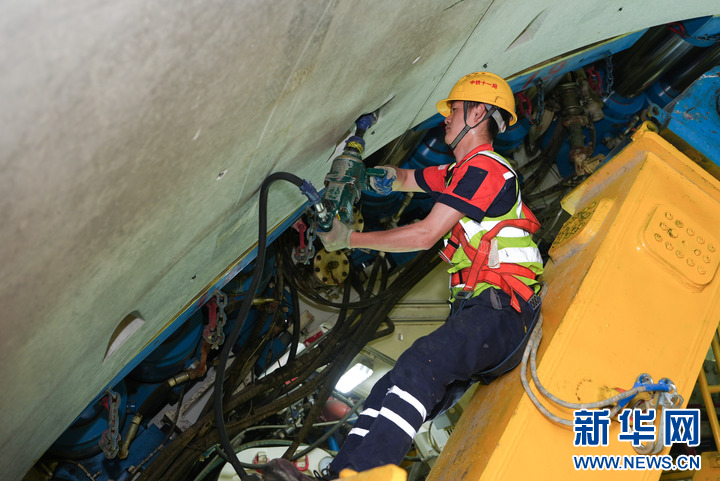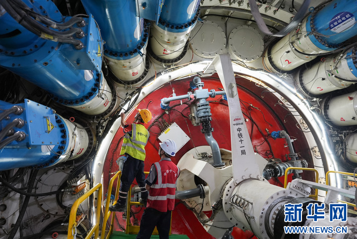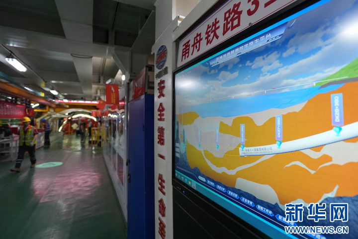 6月5日,中铁十一局技术人员在甬舟铁路金塘海底隧道“定海号”盾构机内关注设备运行情况。