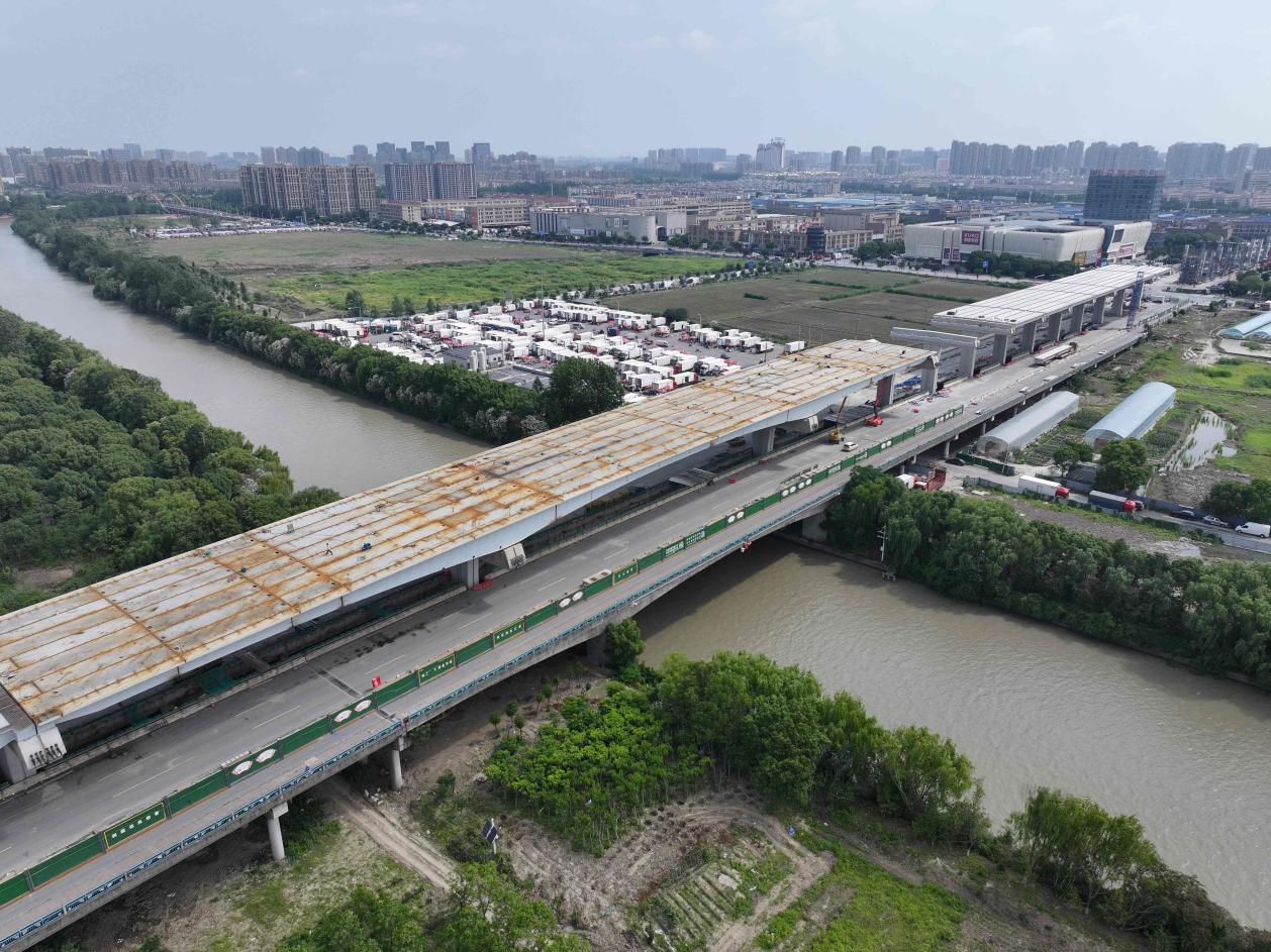 据介绍,320国道建陶市场项目工期紧凑、节点繁多。不仅横跨Ⅳ级航道南郊河和常台高速,呈现出“桥上桥”的复杂形态,还上跨700余米的天佑大桥,新建形成长达579米的“桥中桥”,施工难度不小。