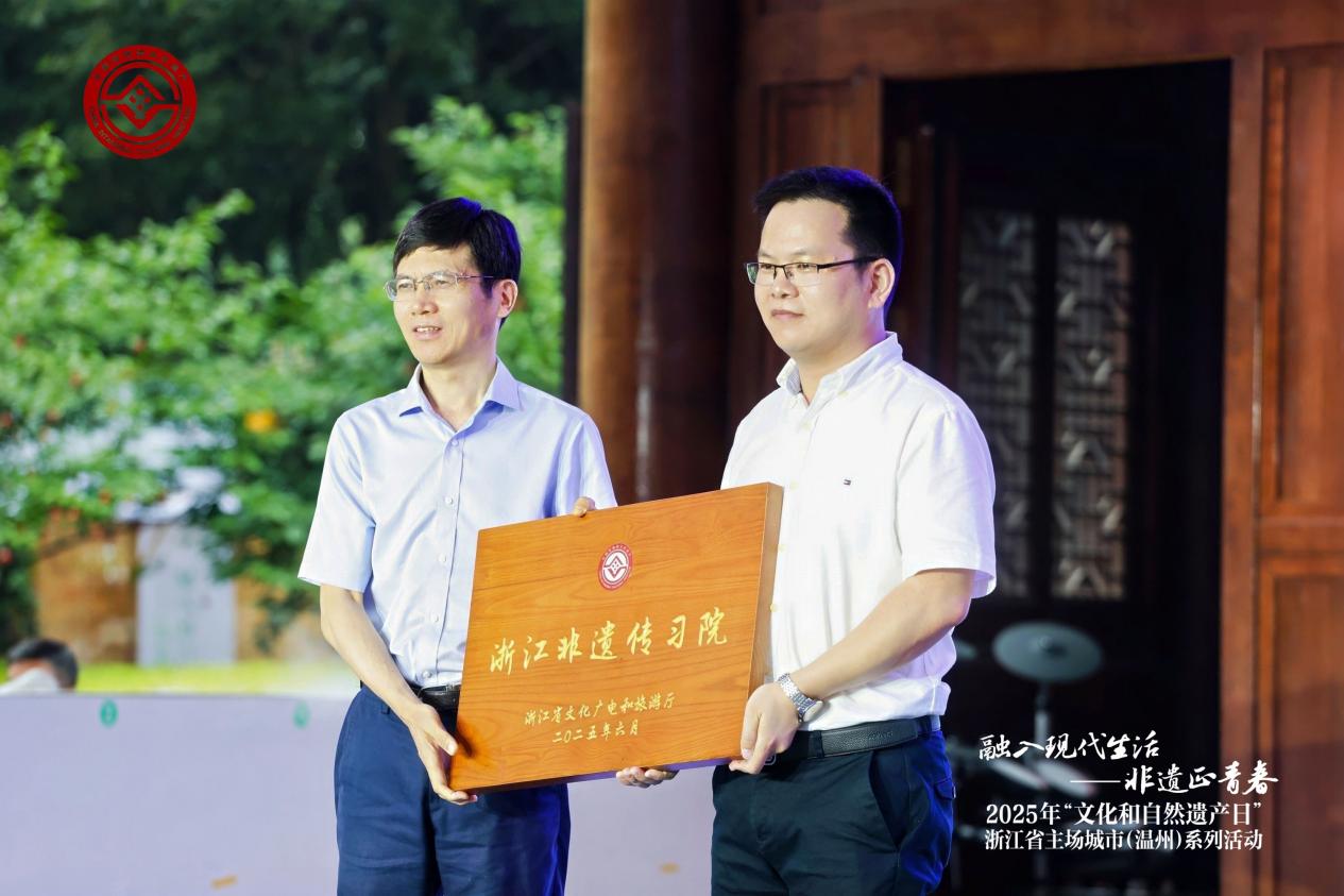 6月14日是2025年的“文化和自然遗产日”。在6月13日举行的2025年“文化和自然遗产日”浙江省主场城市(温州)系列活动启动仪式上,浙江省文化广电和旅游厅为温州技师学院授“浙江非遗传习院”牌,标志着该校在非遗校园传承、研究、传播和创新等方面迎来新的发展平台。