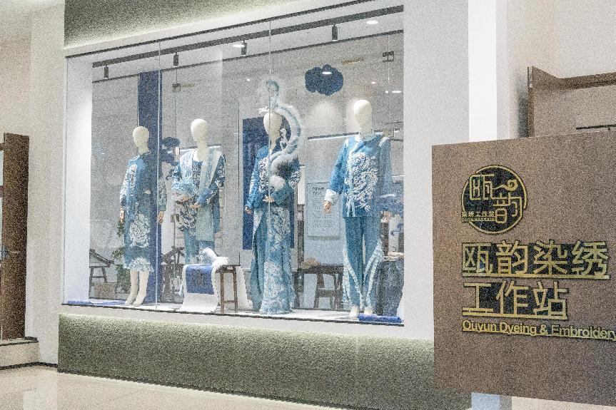 目前,该校已建成蓝夹缬、瓯绣、瓯窑等9个特色工艺工作室,入驻了25位非遗代表性传承人与从业者,创新非遗教育范式,打造集教学、研发、展示、体验于一体的综合性非遗传承平台,助推浙江非遗高质量传承发展。