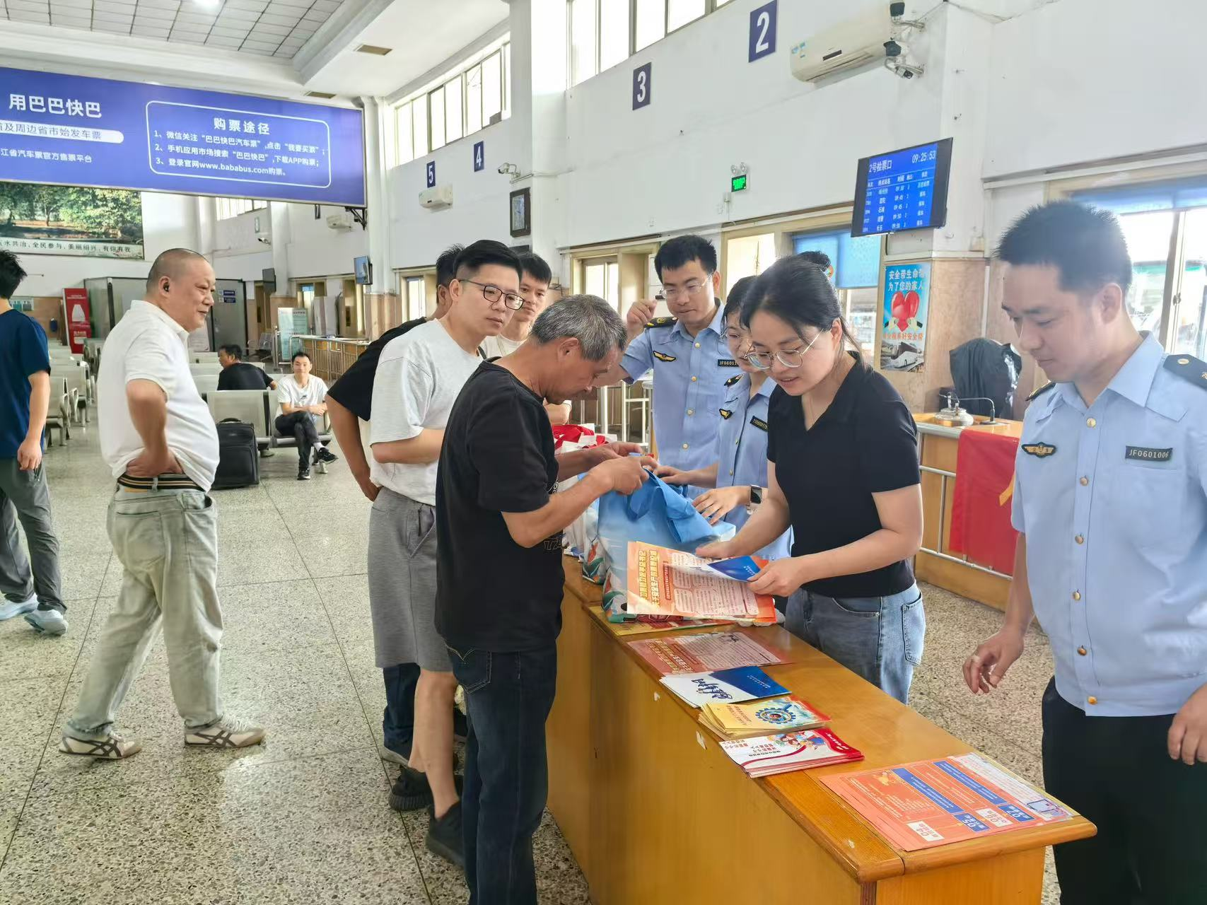 为了更广泛、深入地开展教育宣传,工作人员还设置了安全咨询服务台,由专业人员为过往司乘人员和客运中心工作人员解答关心的安全问题,提醒广大群众从思想上重视交通运输安全,行动上遵守安全生产法律法规。此外,现场悬挂着醒目的宣传横幅,工作人员发放印有安全标语的礼品,在传递安全理念的同时,也为群众提供了实用的物品。