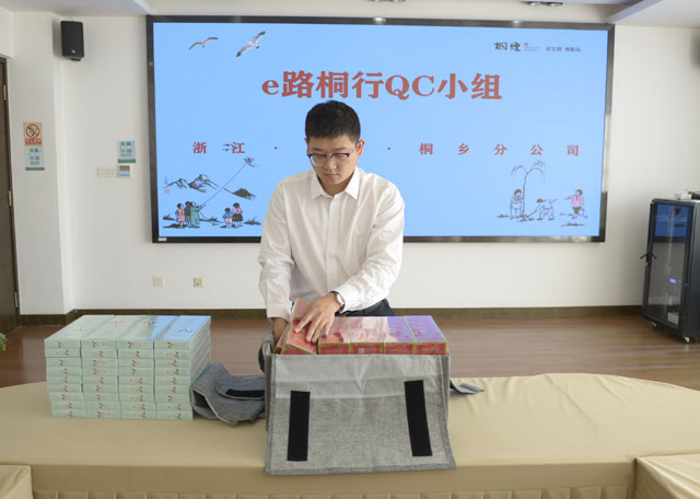 聚焦基层痛点,桐乡县烟草专卖局以“数智许愿池”收集需求,组建“QC圆梦人”团队,研制出绿色、快捷、经济、可视的新型打包工具。该工具采用可折叠“布板盒”限位装置和十字形网纱布袋,使单次打包时间从9分钟缩短至45秒,拆包仅需5秒,效率提升近2倍。