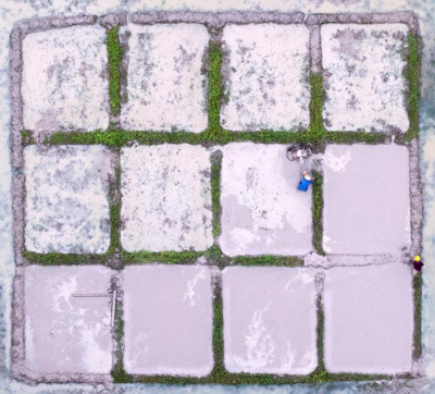 从空中俯瞰,层层叠叠的水田如同一面面翠绿的明镜,映照着天空,新生的秧苗排列成行,恰似大地的绿色绸缎。