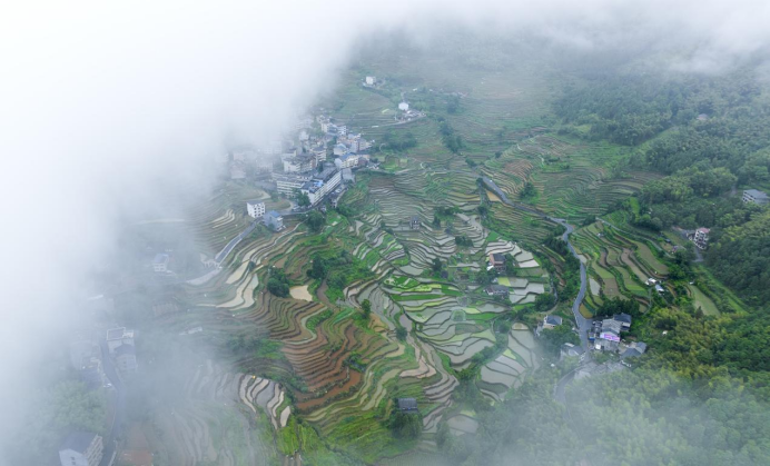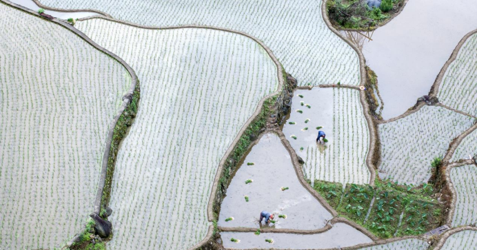 眼下正是水稻插秧的关键时期,浙江省温州市文成县各地抢抓农时开展水稻插秧,一株株秧苗扎根水田,为大地披上“绿装”。