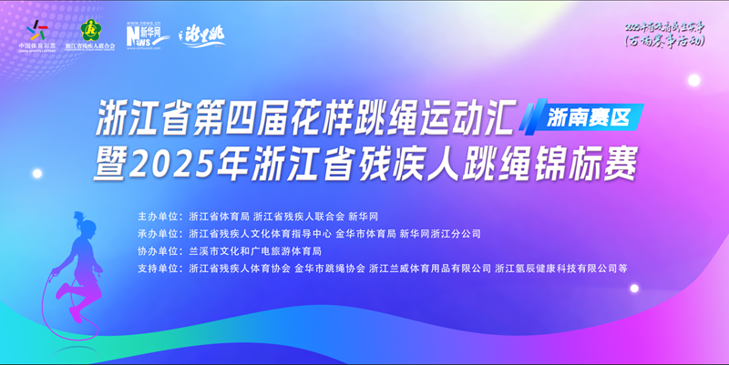 本次活动由浙江省体育局、浙江省残疾人联合会、新华网主办,浙江省残疾人文化体育指导中心、金华市体育局、新华网浙江分公司承办,兰溪市文化和广电旅游体育局协办,浙江省残疾人体育协会、金华市跳绳协会、浙江兰威体育用品有限公司、浙江氢辰健康科技有限公司等支持。(马琦/文 杨荣/视频)