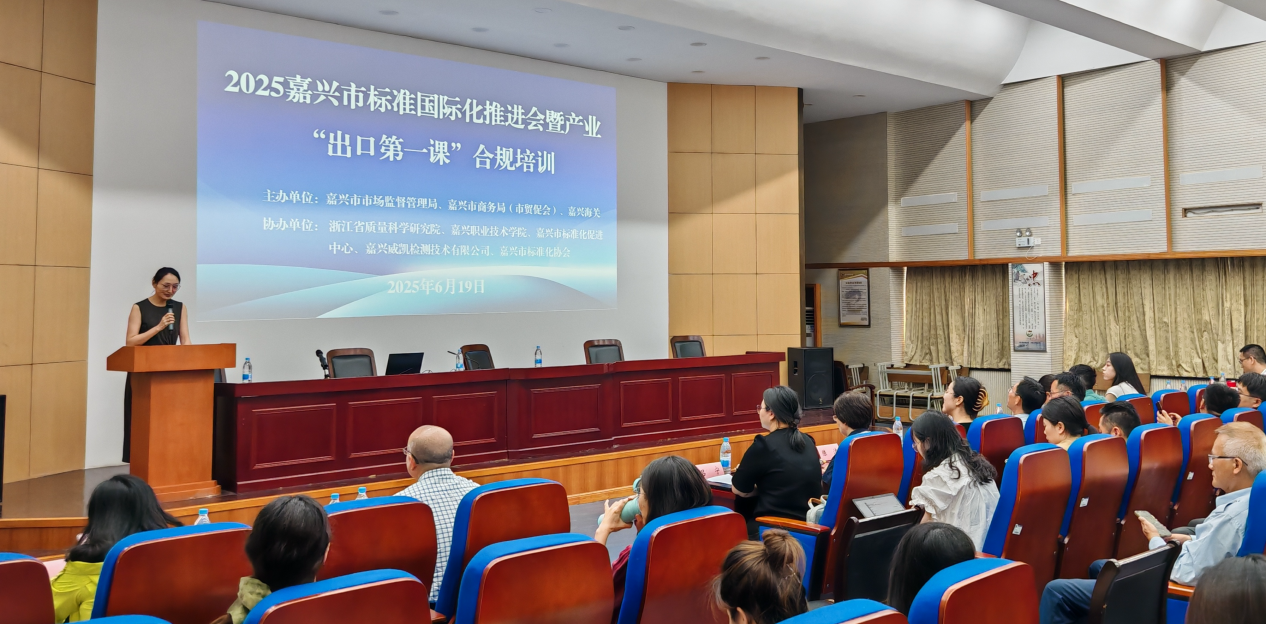 6月19日,“2025嘉兴市标准国际化推进会暨产业‘出口第一课’合规培训”在浙江省嘉兴市举行。本次活动作为破局全球贸易新挑战的积极探索,通过集中展现外贸大市嘉兴在标准化工作方面取得的突破性成效,特别是浙江省质量科学研究院(以下简称“省质科院”)“标准强企”项目的显著服务升级,为当下中国企业如何成功“出海”提供了“嘉兴经验”。