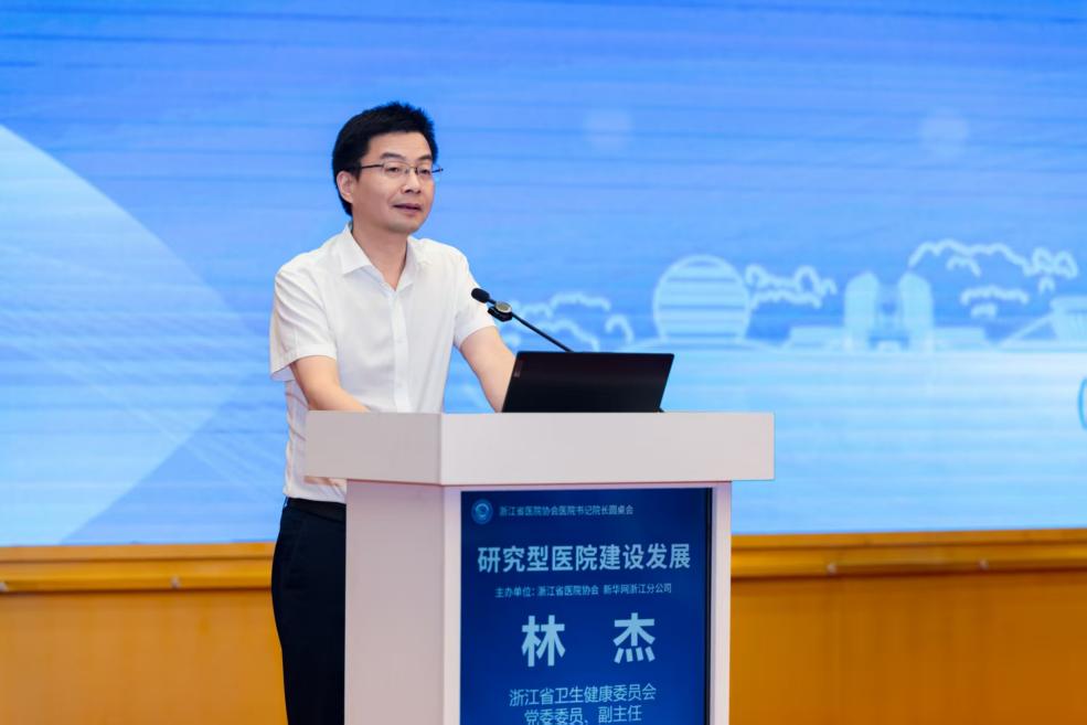 浙江省卫生健康委员会副主任林杰肯定了本次会议对于推进浙江省医学科技和医药产业的创新发展、培育生命健康领域新质生产力具有重要意义。他指出:“研究型医院是浙江省医学科技创新的主阵地、主力军,是新知识、新技术的策源地,是高层次人才的聚集地。”对于研究型医院建设,林杰提出三点倡议,他表示要以人才为根本,深化研究型医院关键支撑;以项目为抓手,优化医研企协同创新生态;以应用为导向,加快创新链产业链深度融合,让医学科技成果服务人民,支撑事业,赋能产业。