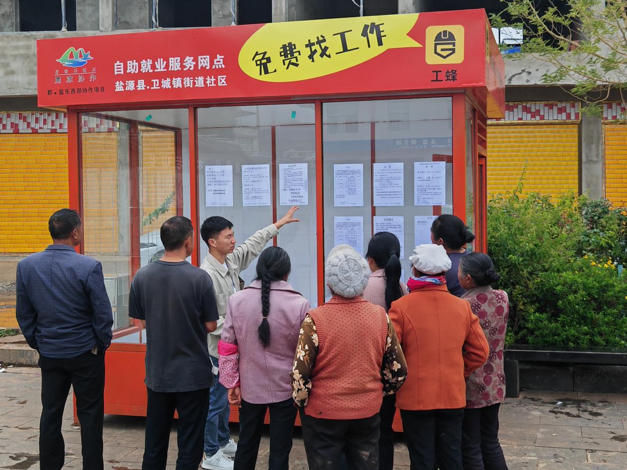6月21日,四川省凉山州盐源县卫城镇街道社区里新出现了一个醒目的岗亭。闻讯而来的居民纷纷驻足围观。原来,这是一个新型招聘岗亭,整齐张贴着几十家企业的招聘信息,吸引不少居民仔细查看适合自己的工作岗位。