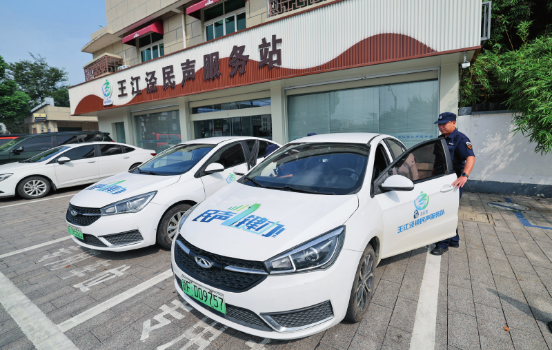 在浙江省嘉兴市秀洲区王江泾 镇民声服务站,“民声一键办”队 员接到报警后,第一时间驾车准备 出发(2024 年 9 月 4 日摄) 徐昱摄 / 本刊