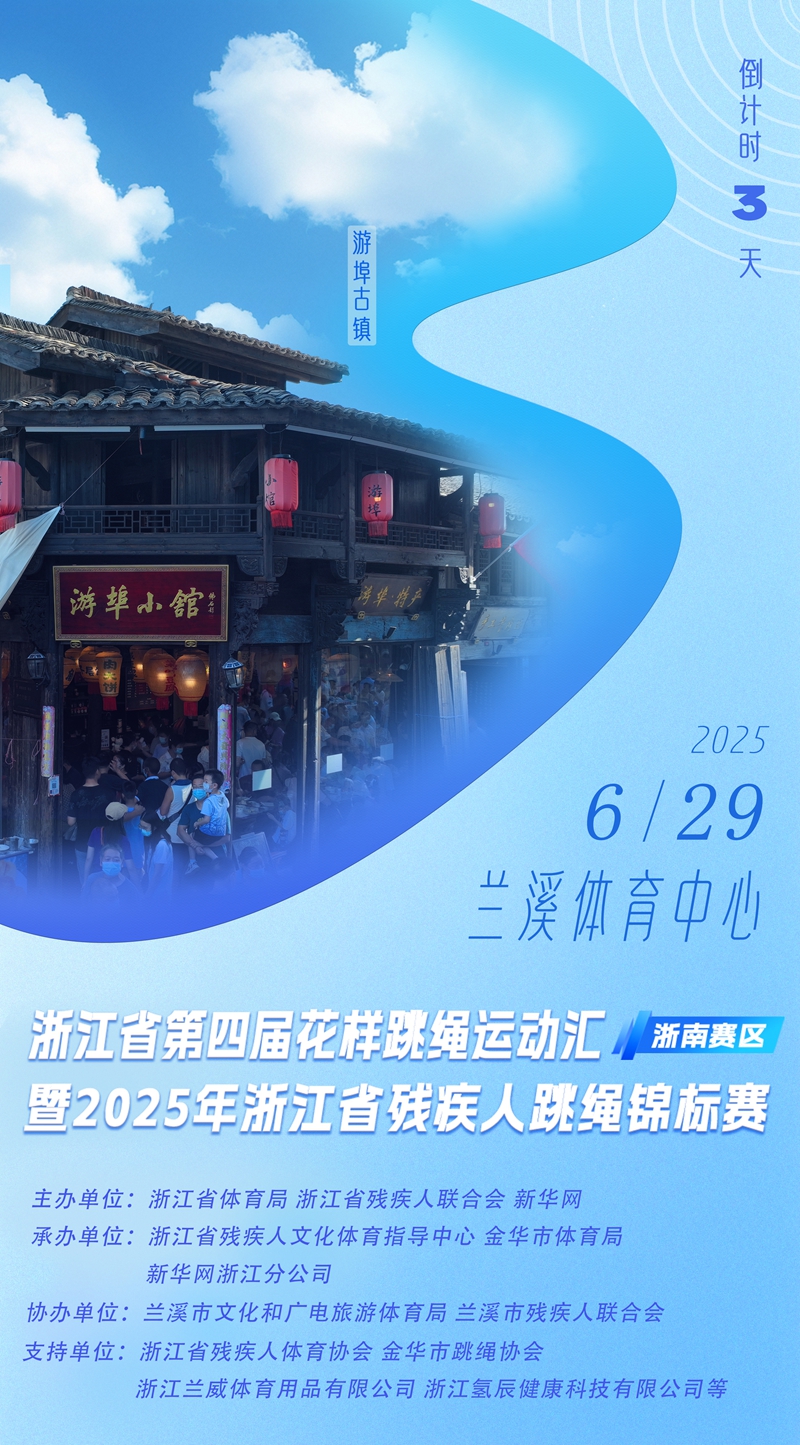 清晨的游埠古镇,氤氲着早茶的烟火气,石板路诉说着千年故事。在这片沉淀时光的土地上,一股青春的活力即将喷薄而出!浙江省第四届花样跳绳运动汇(浙南赛区)暨2025年浙江省残疾人跳绳锦标赛进入最后3天倒计时。