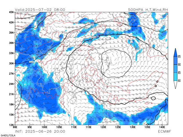 30日起,随着西风槽北缩东移,副热带高压将重新加强扩张,并顺手把西风槽后的高压区纳入其“版图”,势力范围迅速增大。下月初,代表副热带高压的核心区域也将覆盖到杭州上空。