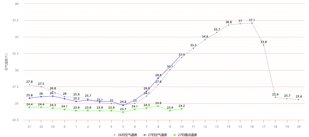 28日(周六):晴到少云,午后到前半夜有时阴有雷阵雨,雷雨时局部可伴有短时大到暴雨和7-9级雷雨大风,25~36℃,南风2~3级;29日(周日):晴到多云,午后局部阴有阵雨或雷雨,25~36℃,南风2~3级;30日(周一):晴到多云,26~37℃,南风2~3级;1日(周二):晴到少云,27~37℃,南风2~3级;2日(周三):晴到少云,27~38℃,南风2~3级;3日(周三):晴到少云,27~38℃,南风2~3级。