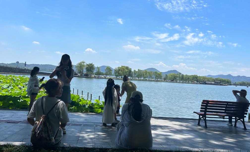 记者3日上午在西湖景区看到,虽正值暑假旅游高峰,但酷热天气下游客数量明显减少。“白天的游客少多了,傍晚太阳慢慢落山人会多起来。”西湖景区的工作人员吴先生介绍。