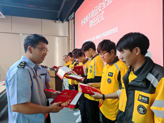 温州市鹿城区市场监督管理局举行外卖骑手“食品安全宣传监督员”聘任仪式。温州市鹿城区市场监督管理局供图