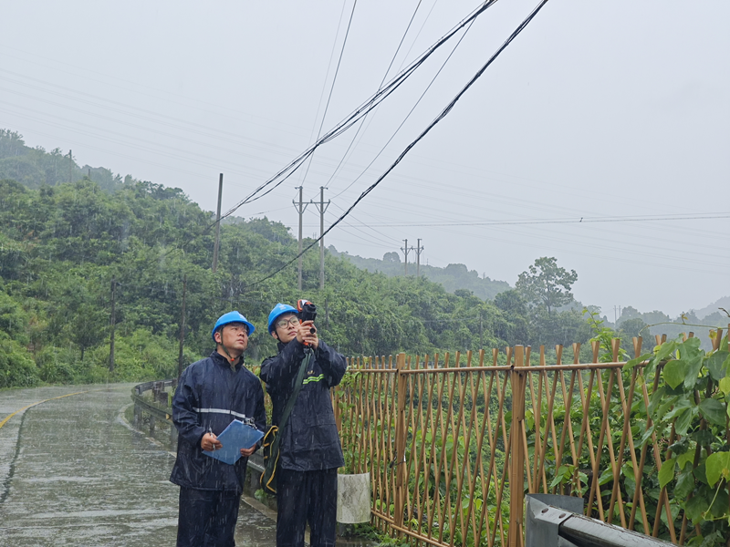 国网温州供电公司工作人员冒雨深入大罗山腹地开展线路特巡,全力保障台风期间电网安全稳定运行。林娴 摄