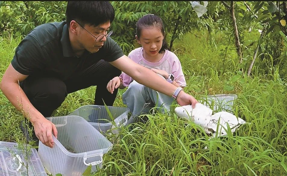 7月6日,萤火虫幼虫顺利进入4龄,具备了较强的生存能力。胡金波和女儿将800多条宁波窗萤幼虫放归自然。