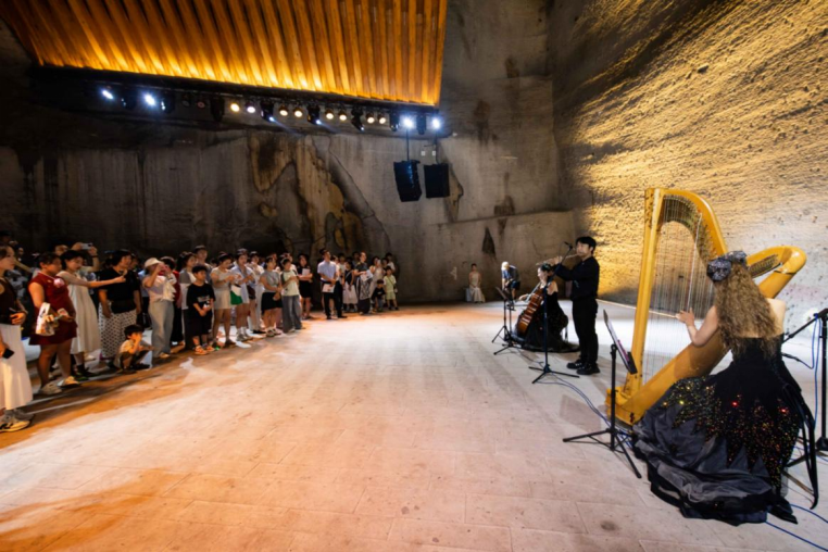 “石窟就像一个天然的音箱,自带混响,我们演奏时都不需要带麦克风。”詹佩佩是纯五度乐团的竖琴演奏者。这是她第一次在石窟里表演,演出效果超出她的预期。